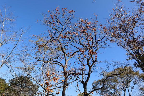 秋吉台家族旅行村からスタート。青空にたくさんの柿の実が