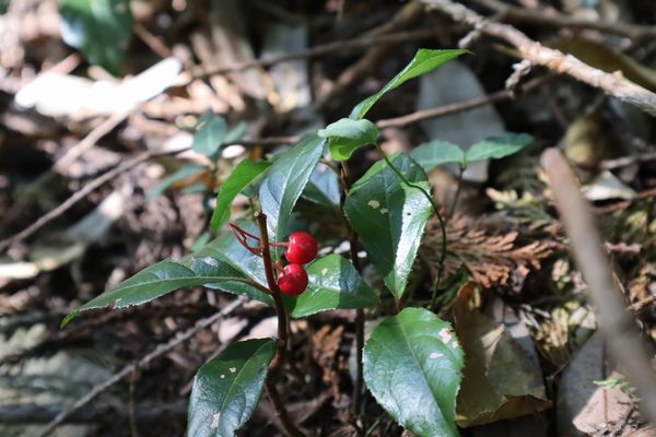ヤブコウジの赤い実は艶やか