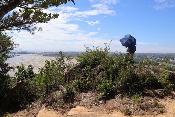 千畳敷からの眺めは抜群で、遠浅の岐波の海岸、東岐波の町並み、まわりの山々がよく見えました。上りは徐々に尾根に近づき木々のトンネルになっていきます。ほどよい風があり、木陰歩きの尾根道では心地よい登山を楽しむことができました。そして2時間かけて全員登頂、13時、よかったです!