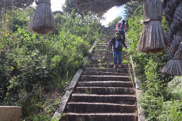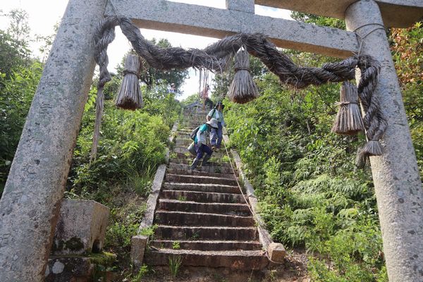 下山道は焼火(たくひ)神社の参道となっており道はよく整備され、ほとんどにロープが張られています。500mと距離も短いのでスムーズな下山ができました。竹林に入ると登山口は間近。15時登山完了、道の駅きららあじすへ。カボチャのソフトクリームが美味しかったです