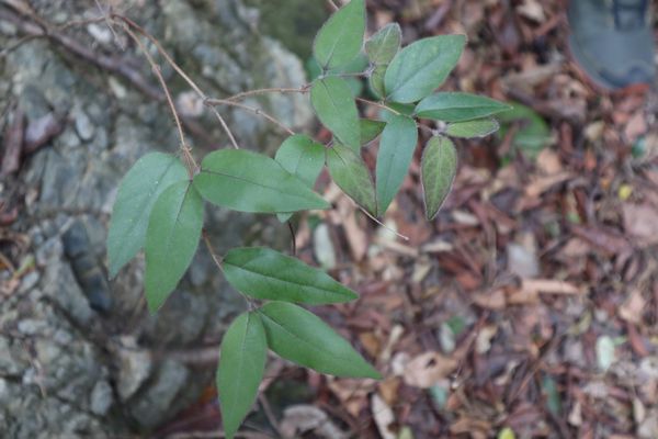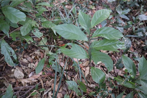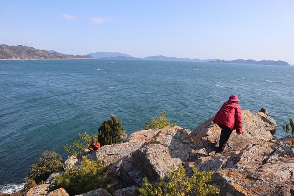 象鼻ヶ岬散策では海岸から見える島々や山の同定、暖地性植物の観察を楽しみました。特に事前に調べていた、カンザブロウノキ、タイミンタチバナ、ミミズバイ、ツルコウジ、サカキカズラのすべてを見ることができて満足でした。所長さんありがとうございました。