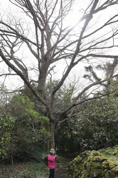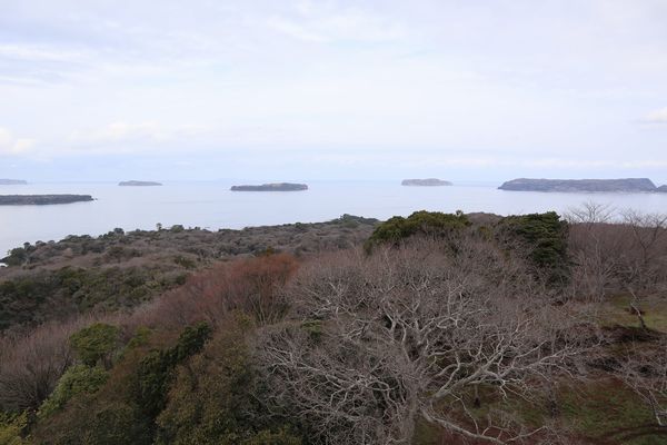 展望台からヤブツバキの原生林を眺める。 |