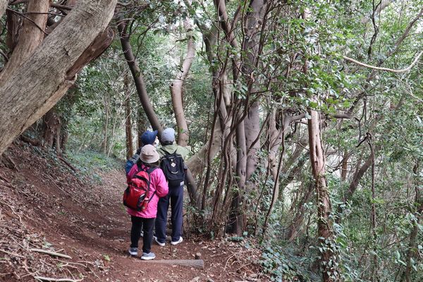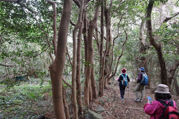 ヤブツバキの原生林が始まりました。 |