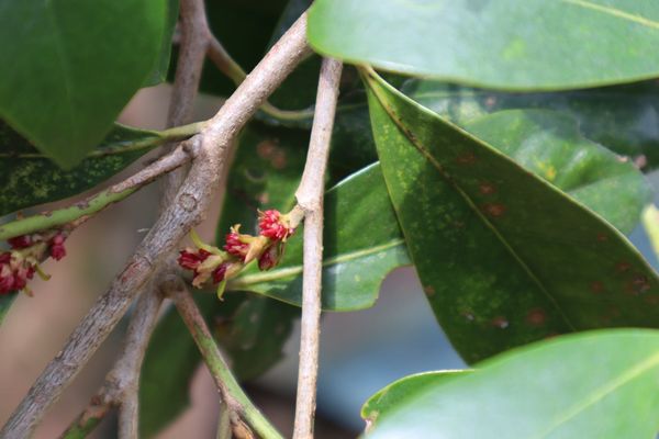 バクチノキ 決め手は葉の根元にある1対の蜜腺 |