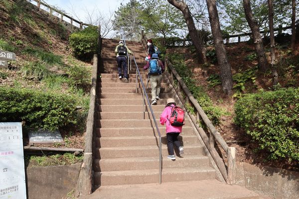駐車場から階段を上って笠山山頂園地へ |
