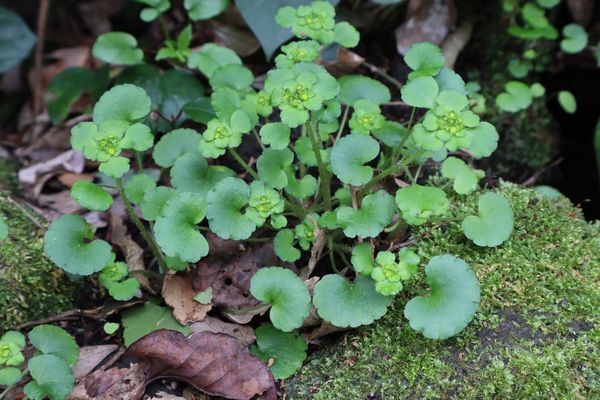 ヤマネコノメ 葉が対生だったらネコノメソウ、互生だったらヤマネコノメ。互生であることを確かめました。 |