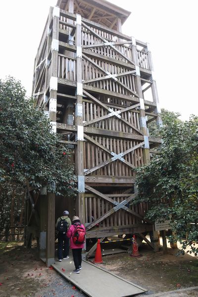 ヤブツバキ原生林の中にある展望台 |