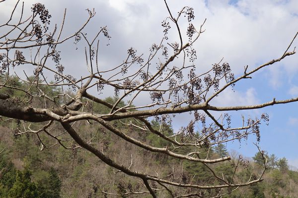 ①イイギリ このイイギリの大木にあいさつをしてから長野山の植物観察会はスタートです。
