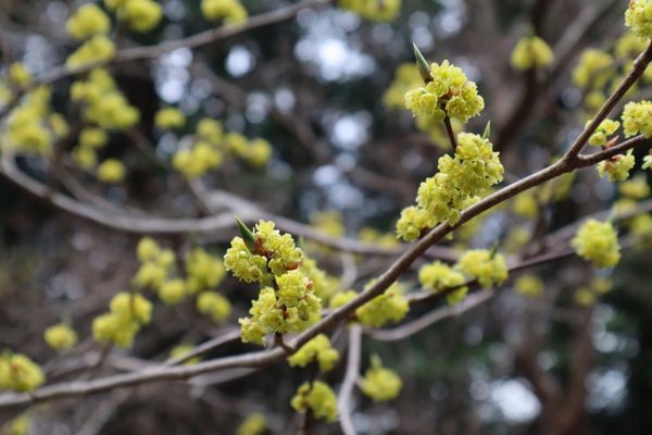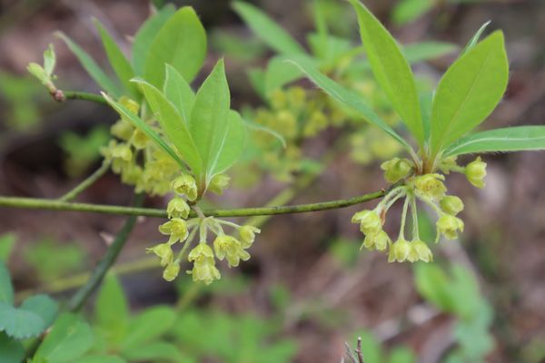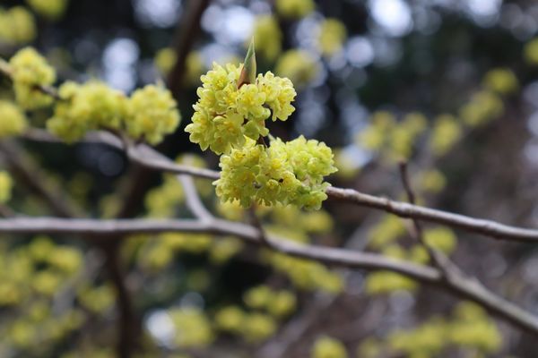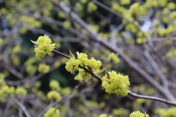 ⑤クロモジ 葉に切れ込みがないのでクロモジ。雄花 |