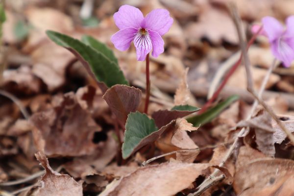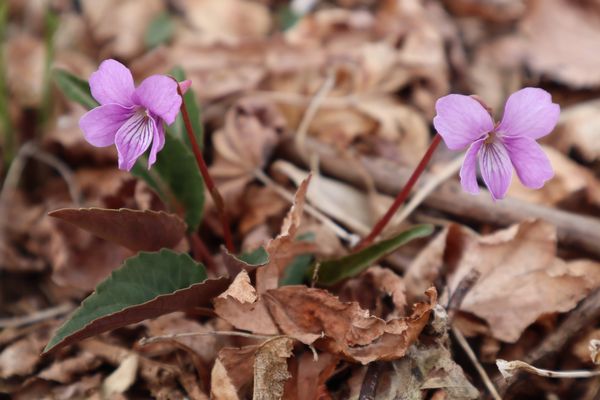 ⑭シハイスミレ 紫背菫と書きます。名前の通り葉裏が紫色です。 |