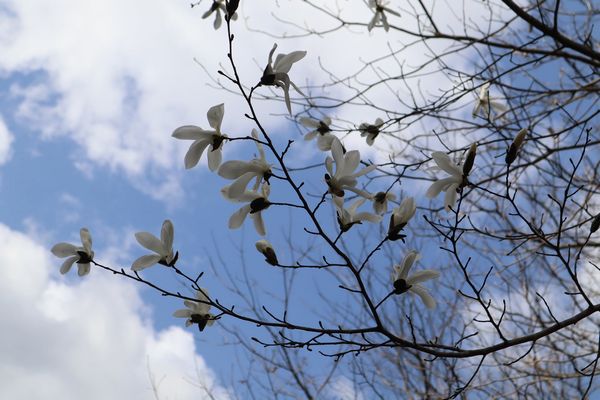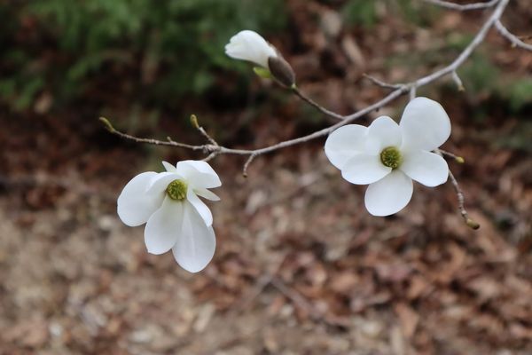花の根元に一枚の葉が付いていません。コブシとの違い確認しました。 |