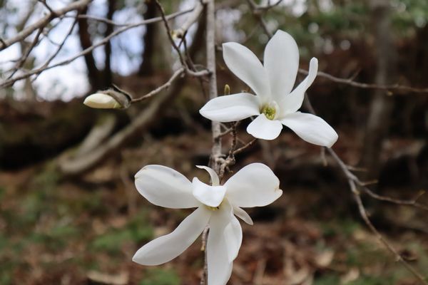 今回の観察会の主役はタムシバ。コブシとの違いを確認することと花の匂いを覚えること。 |