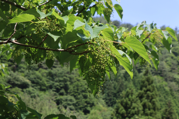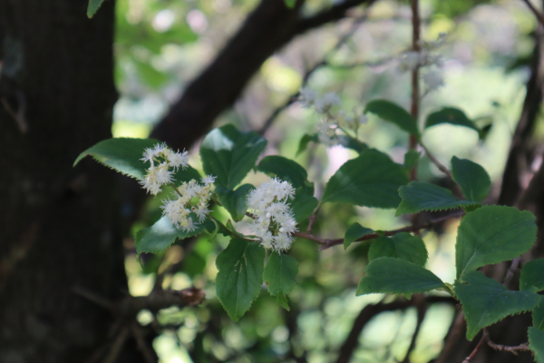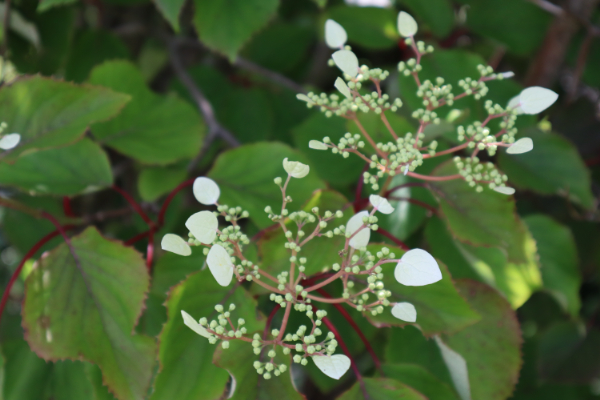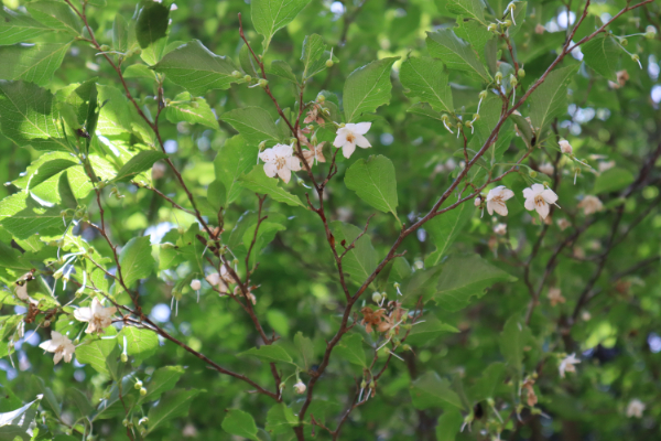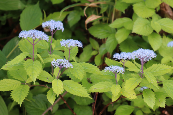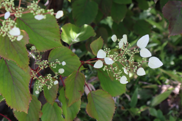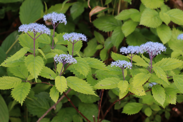 ササユリ コアジサイ イワガラミ タンナサワフタギ ウツギ ナツハゼ トチノキ ナナカマド ニワウルシ ヤマボウシ イイギリ