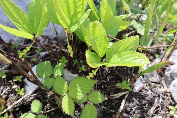 ①②③ヒトリシズカ、④⑤⑥ホタルカズラ、⑦カノコソウ、⑧ジャケツイバラ、⑨エノキ、⑩ニオイタチツボスミレ、⑪スミレ、⑫キジムシロ、⑬センボンヤリ、⑭⑮⑯オキナグサ、⑰ササの花、⑱ムベ、⑲ミツバアケビ、㉓ミツバツチグリ、㉔クヌギ、㉖ヒメハギ