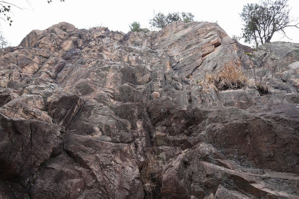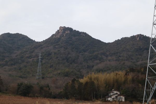 真ん中の岩でごつごつした山頂の山が陶ヶ岳。本日の目的の山です。ロッククライミングの練習場として有名です。ボルダリングの練習は危険ですよ 松永邸駐車場に車を駐めて徒歩で登山口まで移動します。