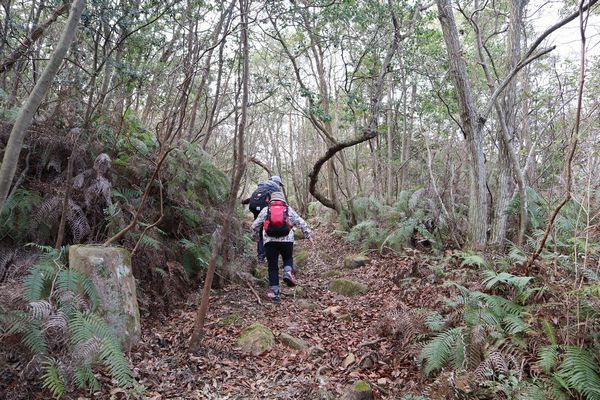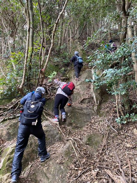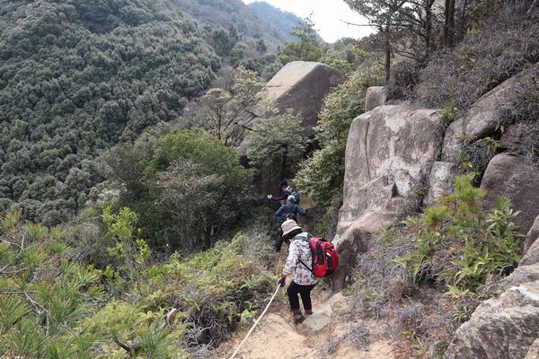 陶ヶ岳の急坂登り。まるで忍者修行の様です。 |